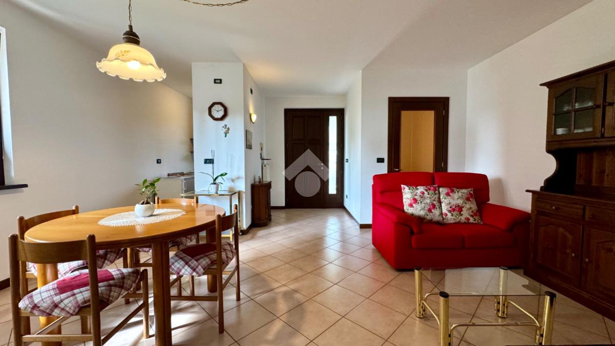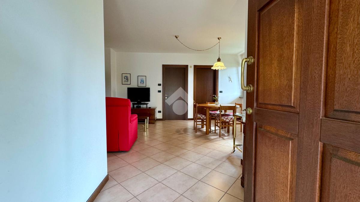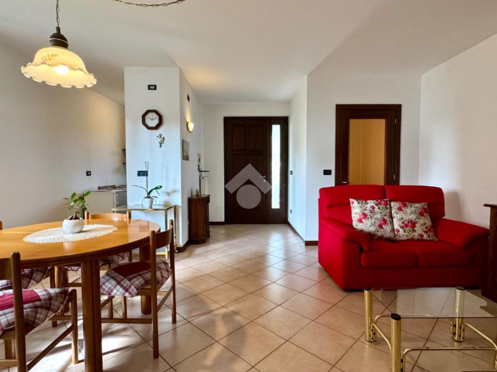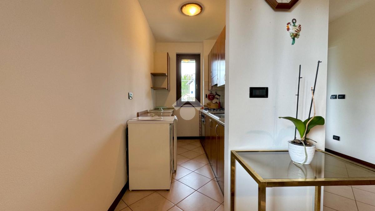 L'ingresso principale conduce direttamente alla zona living: un ambiente luminoso e accogliente che integra armoniosamente il soggiorno e l'angolo cottura.