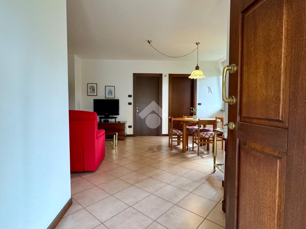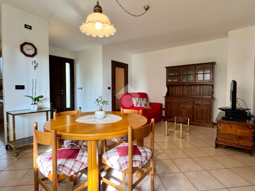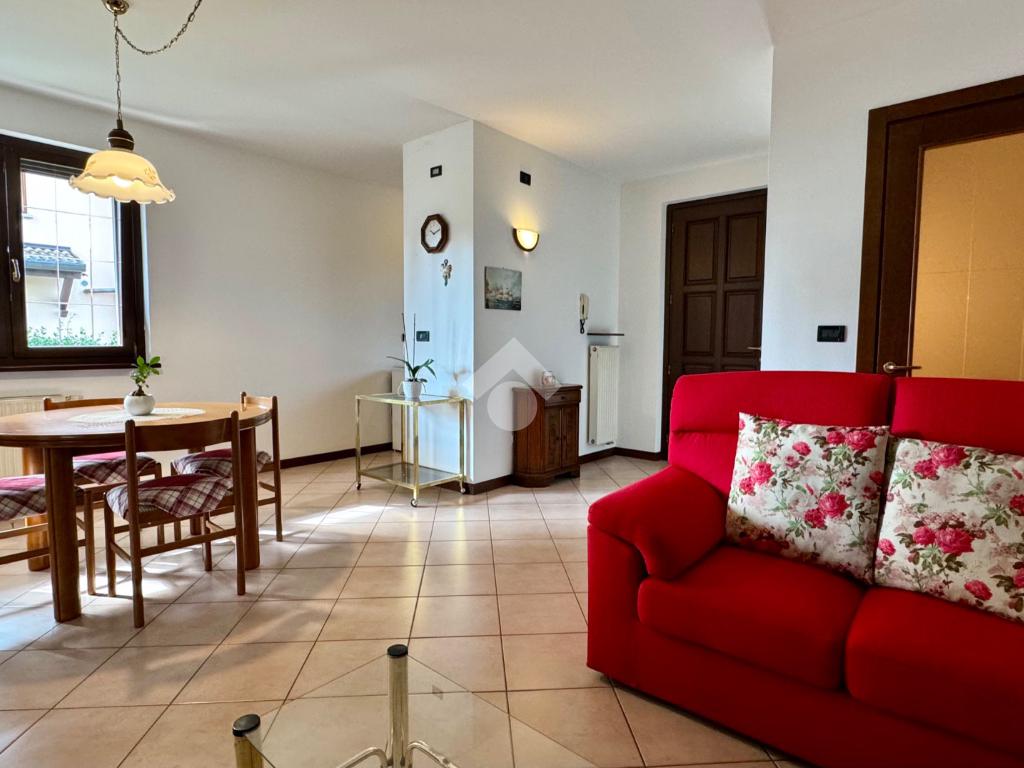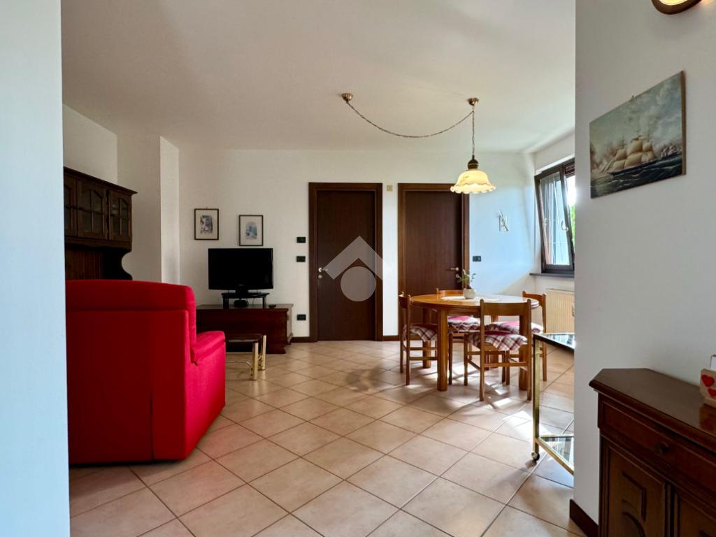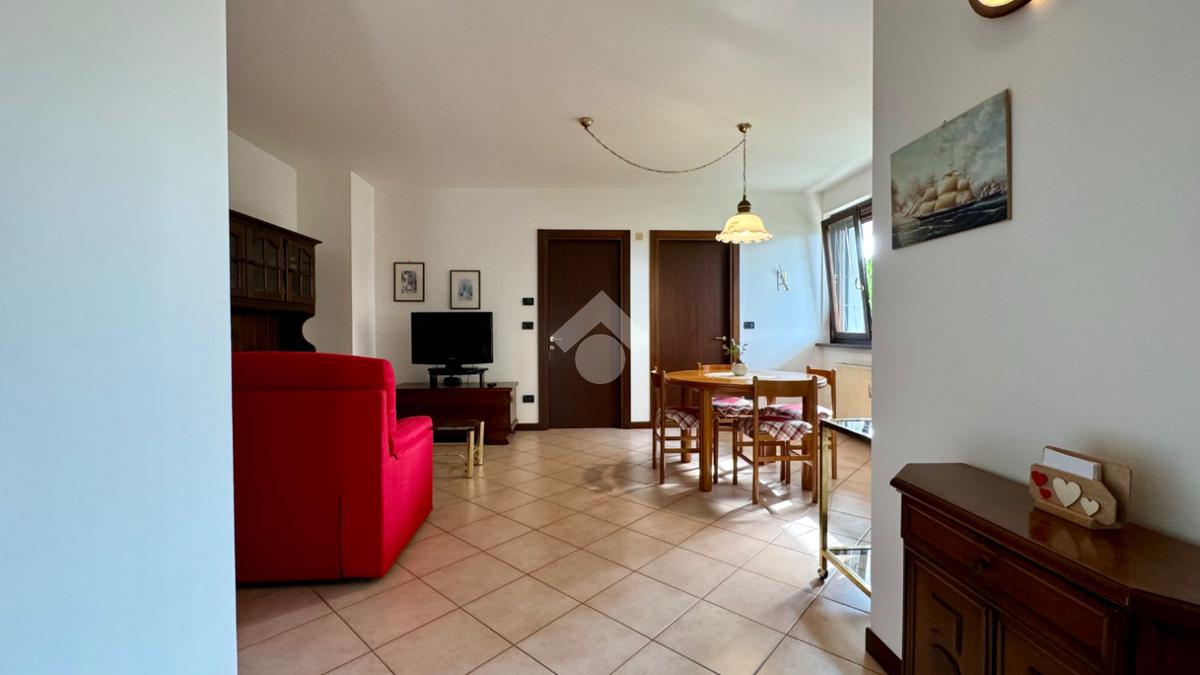 L'ingresso principale conduce direttamente alla zona living: un ambiente luminoso e accogliente che integra armoniosamente il soggiorno e l'angolo cottura.