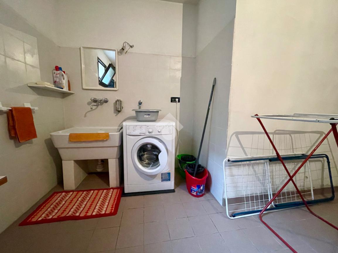 A completare la proprietà, scendendo al piano inferiore, si trova un funzionale locale lavanderia. Questo spazio aggiuntivo è una soluzione strategica per la gestione domestica, permettendo di mantenere l’abitazione principale libera da ingombri tecnici e garantendo una perfetta organizzazione della casa.