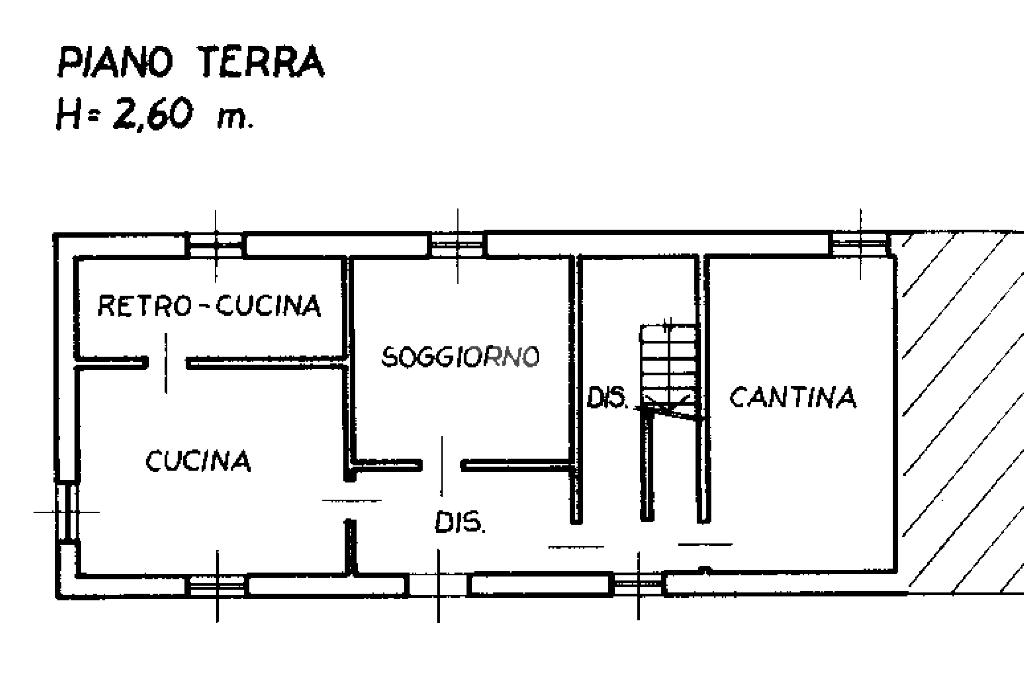 Il piano terra è formato da una cucina abitabile con cucinotto e dal soggiorno; a destra dell’ingresso invece insistono le scale che conducono al piano superiore e che portano anche in cantina.
