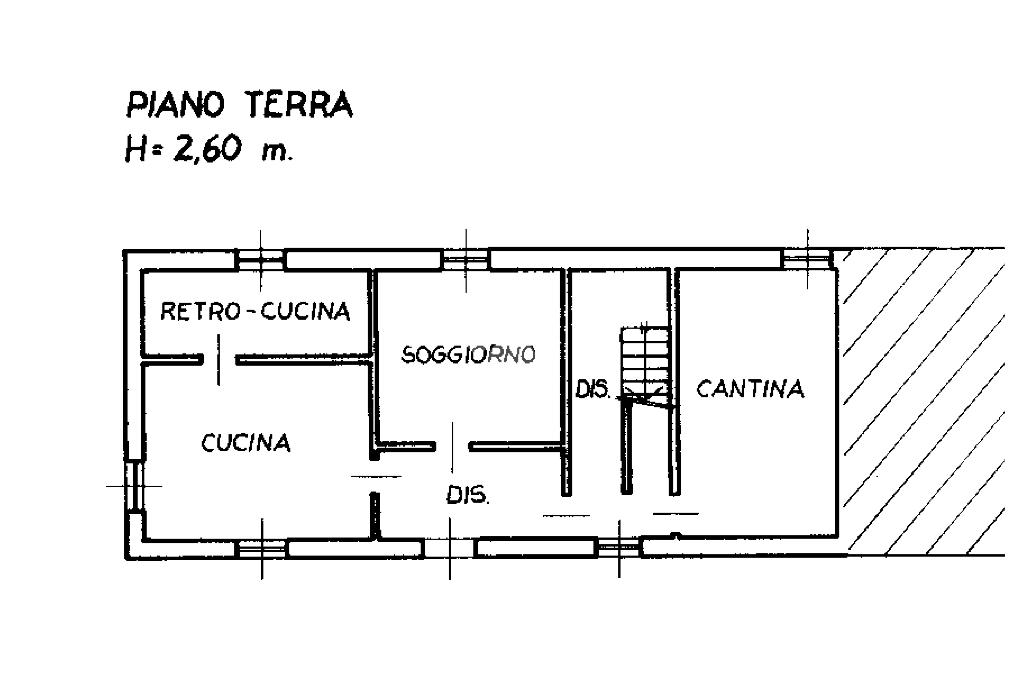 Il piano terra è formato da una cucina abitabile con cucinotto e dal soggiorno; a destra dell’ingresso invece insistono le scale che conducono al piano superiore e che portano anche in cantina.