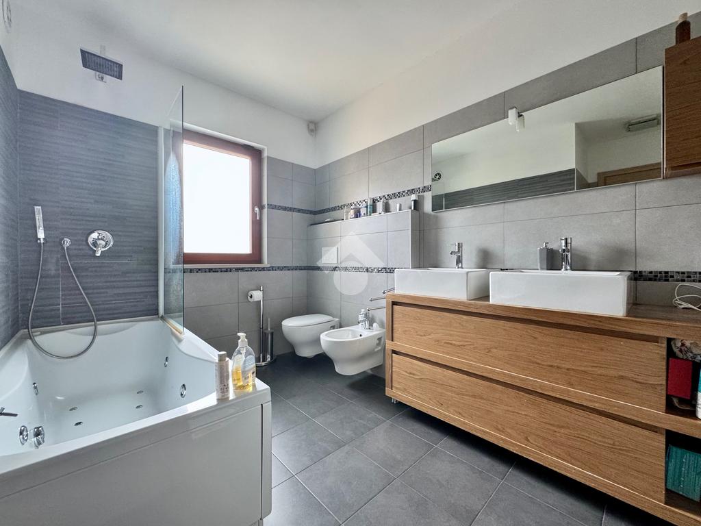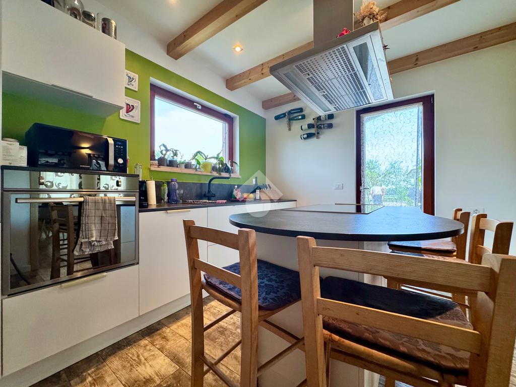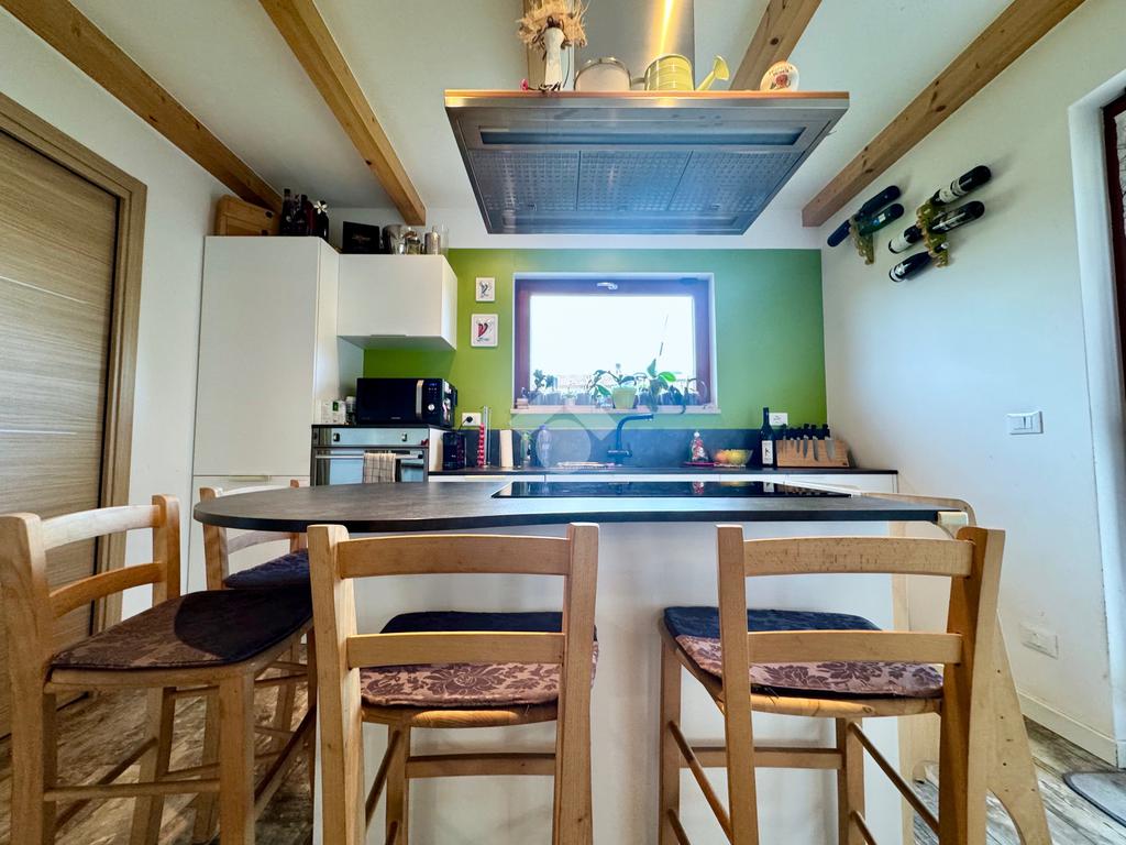 Il riscaldamento è erogato tramite pannelli radianti di arredo presenti in un tutti gli ambienti dell’abitazione e anche tramite una stufa a pellet presente nel living che scalda agevolmente tutta la casa nei giorni di freddo intenso.