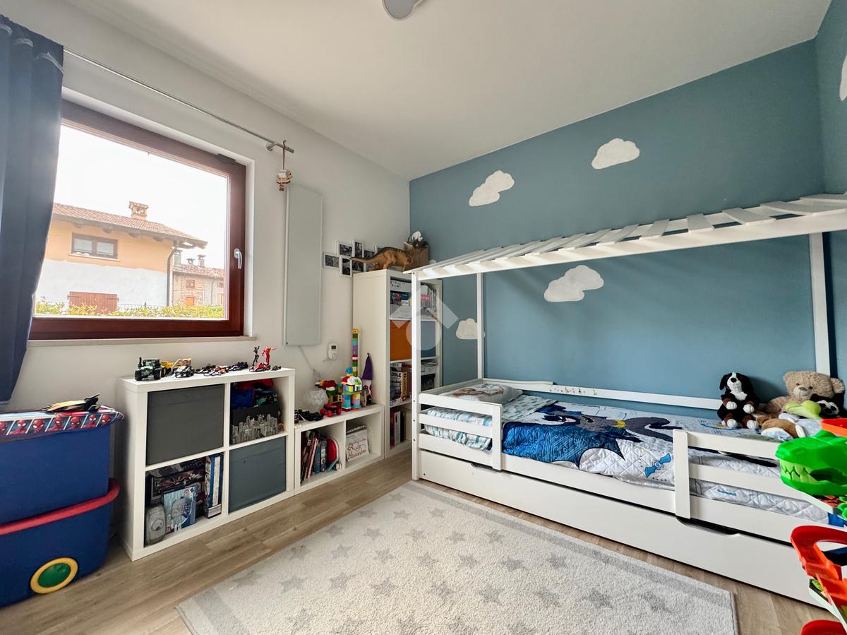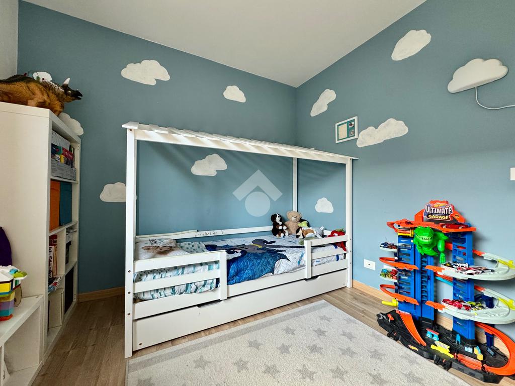 Entrambi gli ambienti della zona giorno possono accedere al giardino attraverso porta finestra; questo rende la fruizione dello spazio esterno molto funzionale.