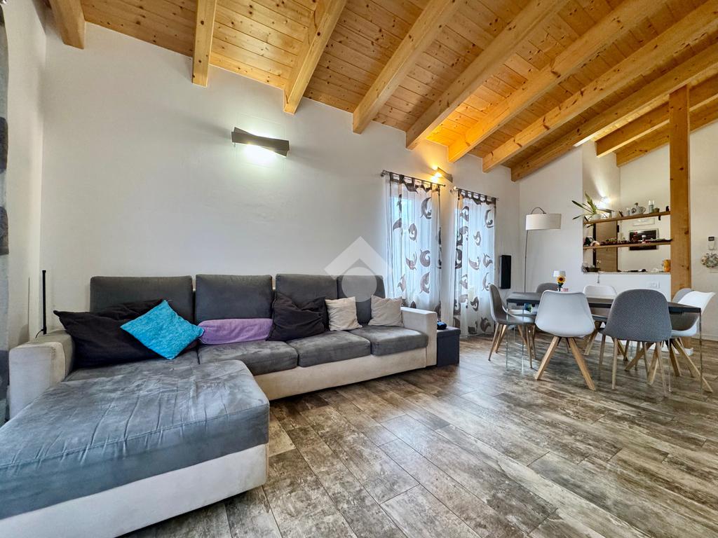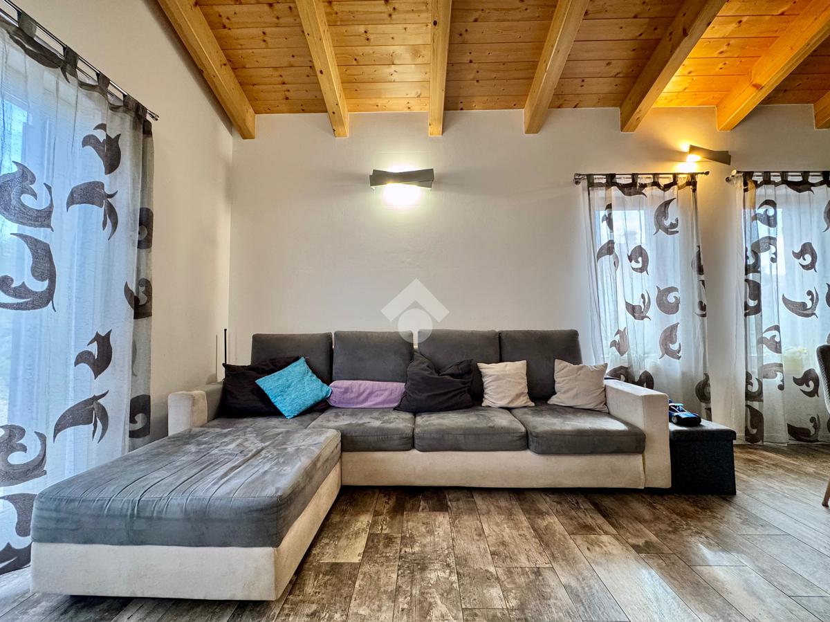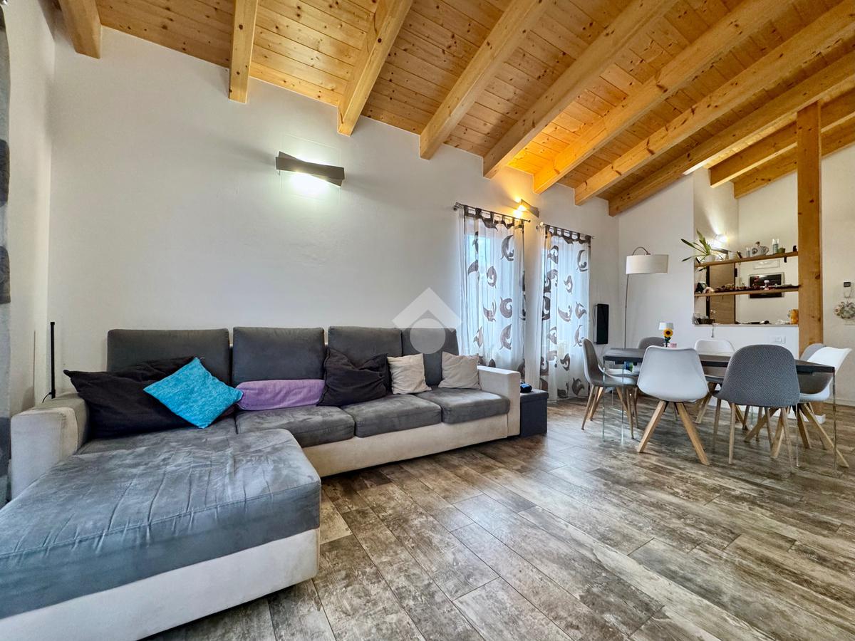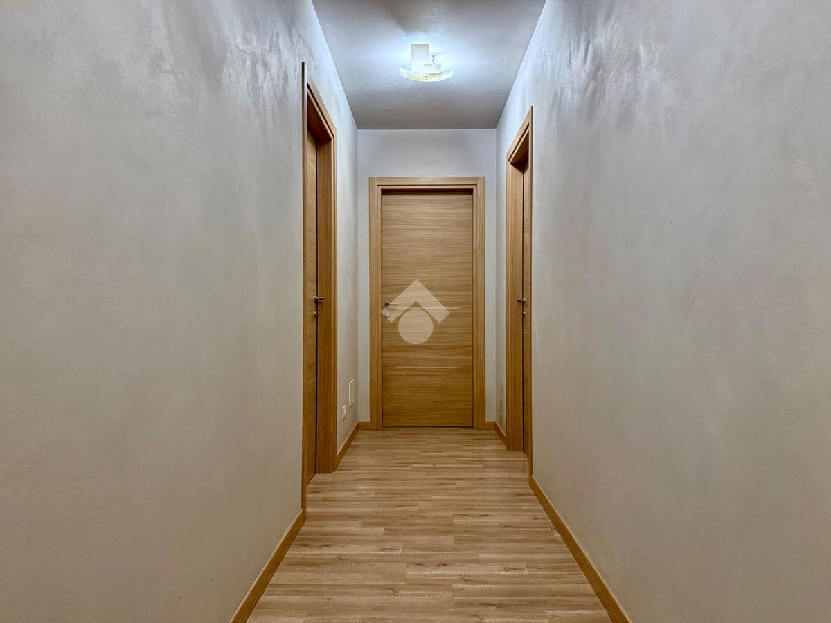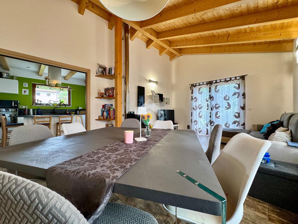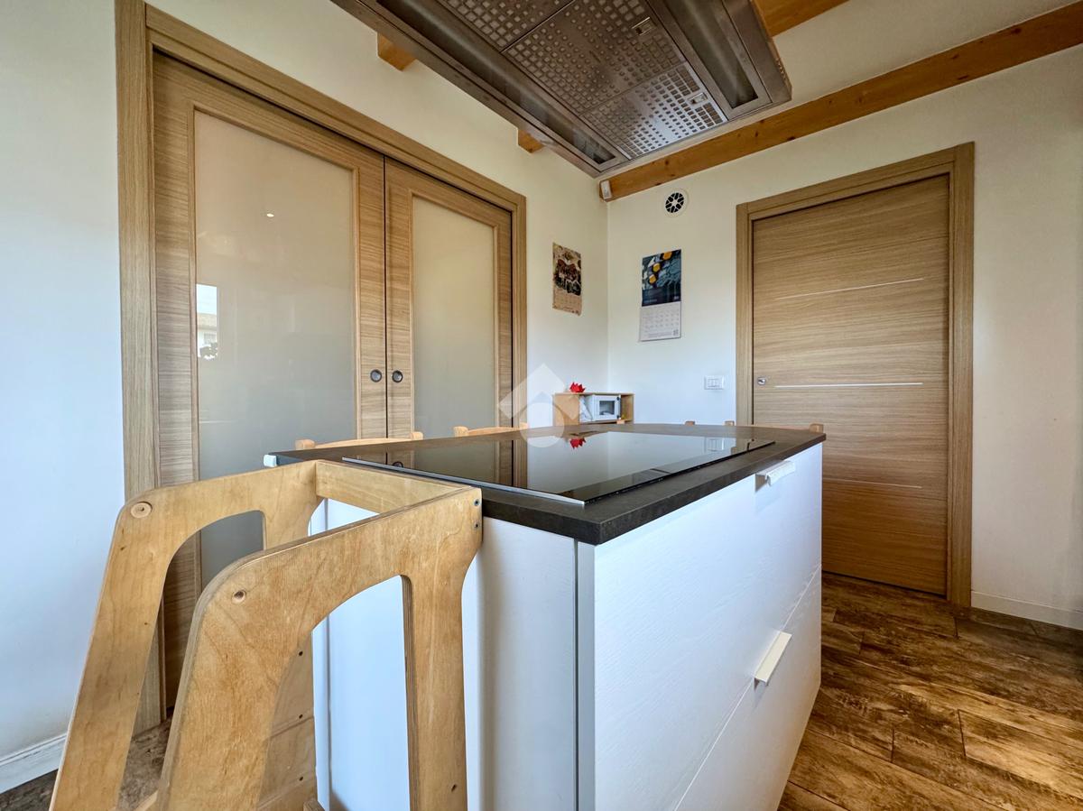 Gli ambienti della zona giorno, oltre ad avere spazi generosi, presentano anche soffitti molto alti con rifiniture di travi in legno a vista, pavimenti in grès porcellanato effetto legno stampato, mentre nella zona notte il laminato in rovere coprirà tutta la superficie delle camere e del corridoio.